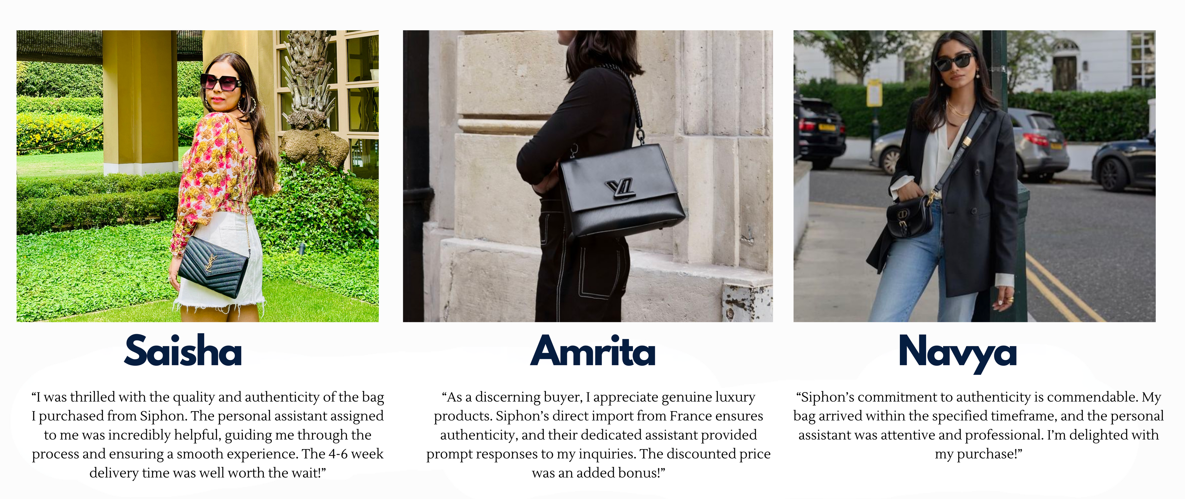 Siphon imports authentic luxury accessories from France, offering discounted prices . Our streamlined website provides personalized assistance, ensuring a seamless shopping experience for customers seeking timeless elegance at unbeatable value.